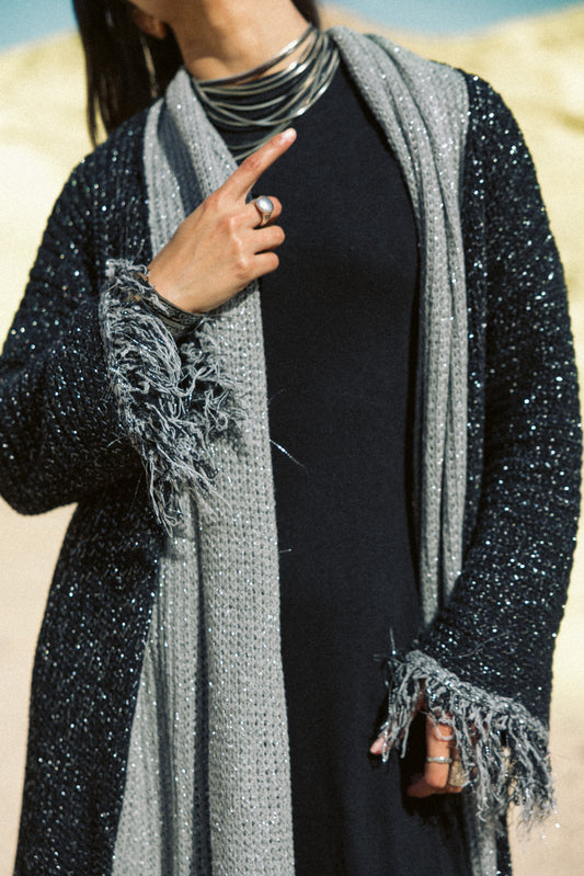Duo knit Kaftan in black