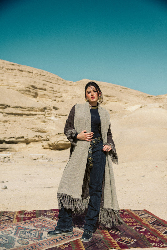 Duo knit Kaftan in brown