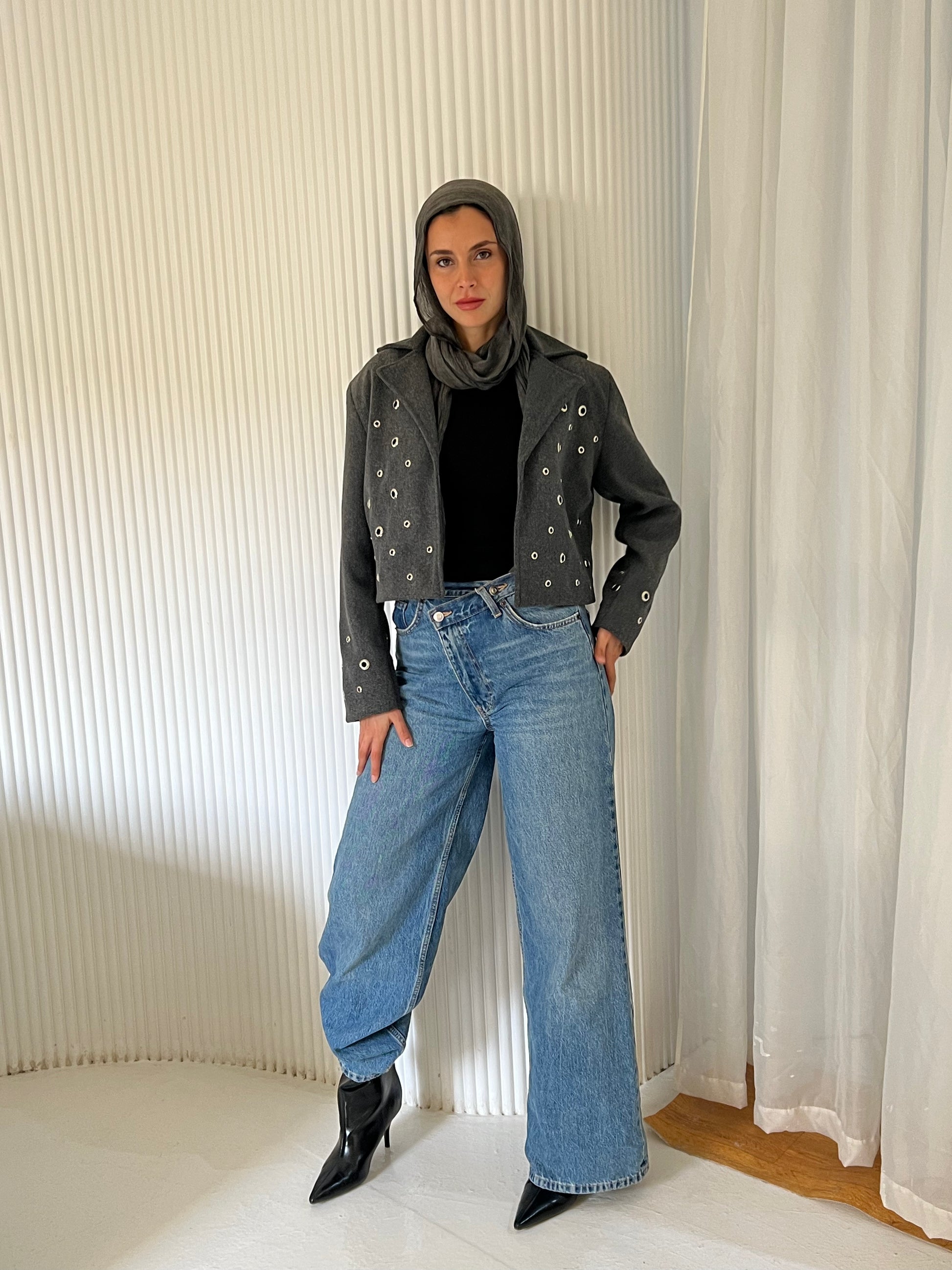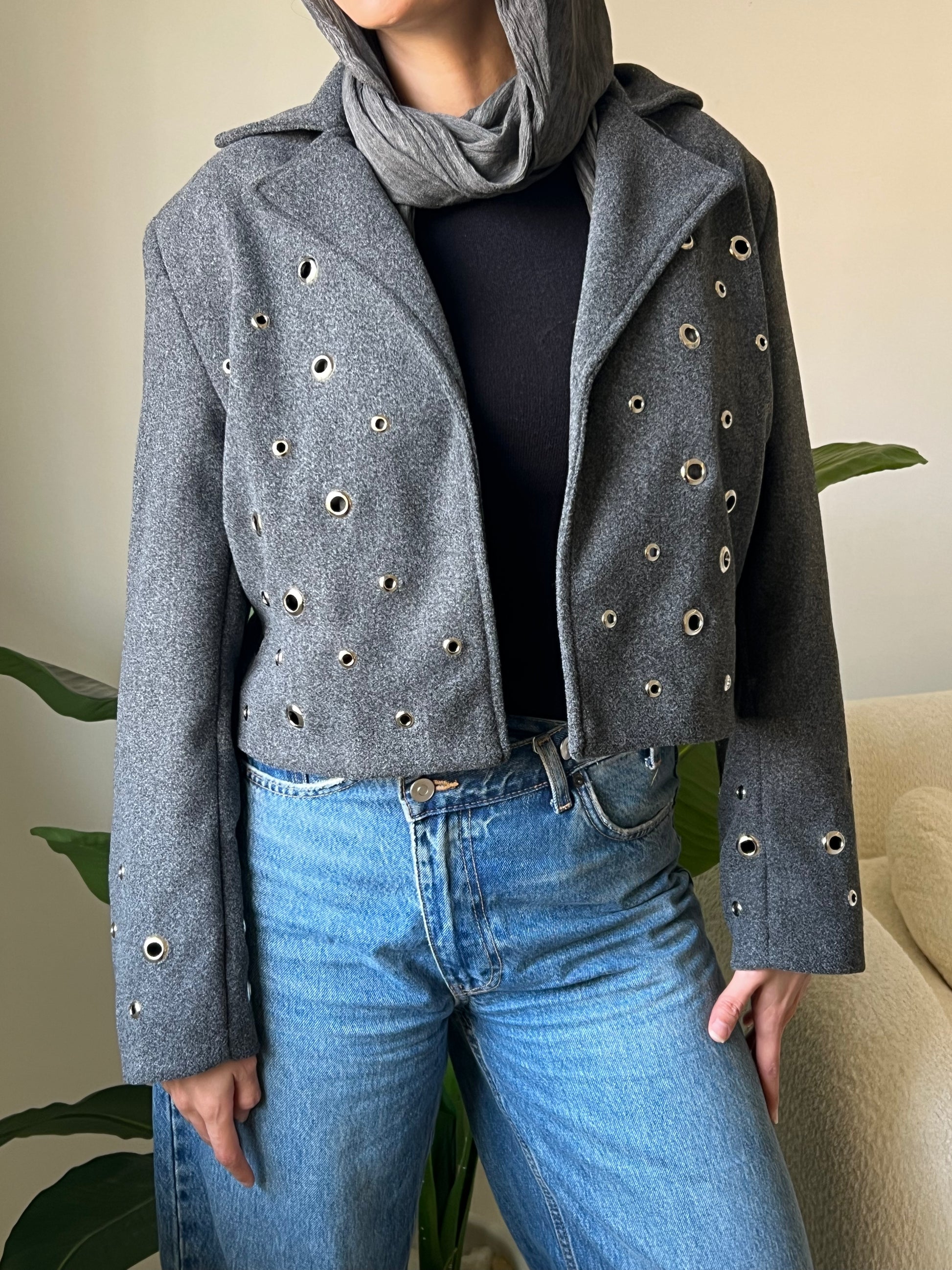 Pierced wool jacket in grey