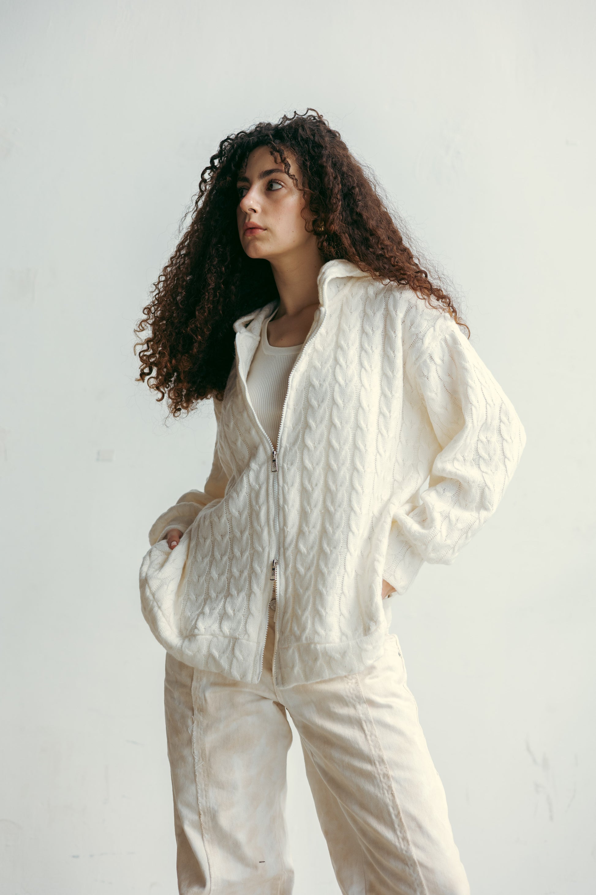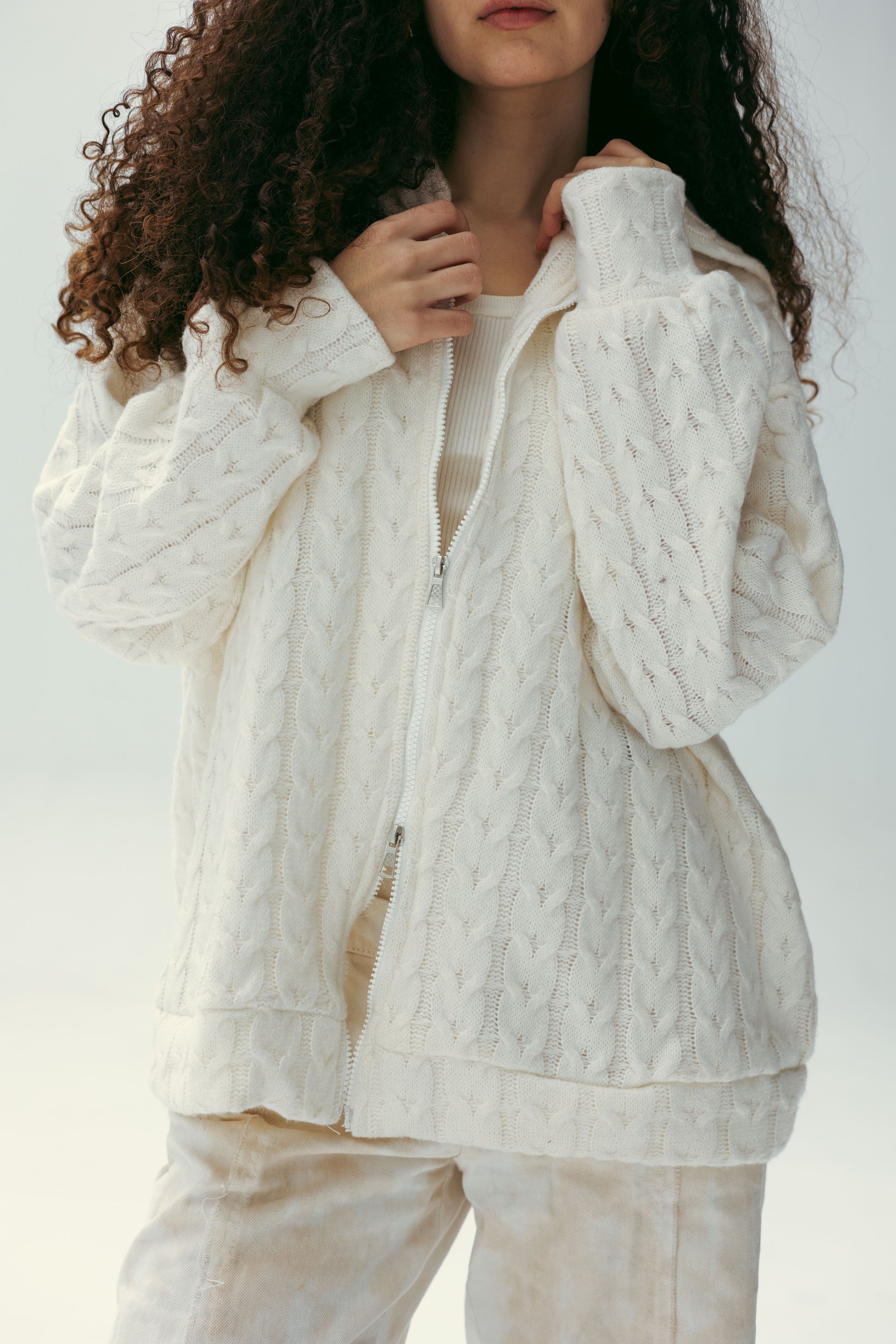 two way zipper pullover in offwhite