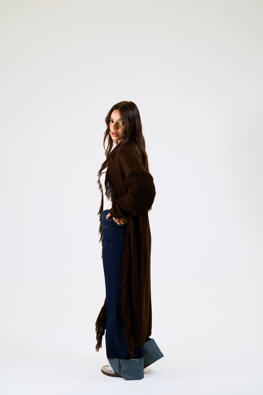 Free Spirit Fringe Cardigan in brown